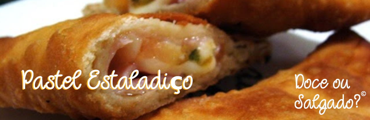 Tipos de Pasteis Estaladiços: carne, camarão, mistos, salsicha, legumes, bacalhau, frango, alheira, morcela, pizza, omelete, etc.
